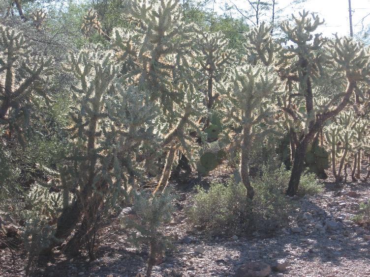 The back yard and south side double lot area are wild with cholla cactus trees, PaloVerde trees, more cactus. and wildlife.